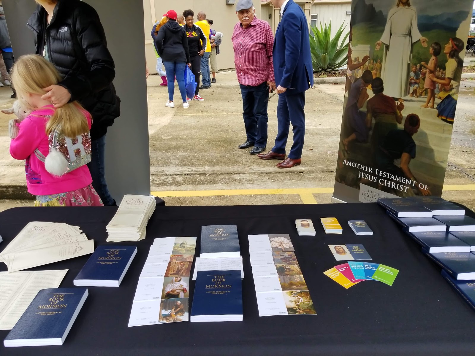 • In one day... we passed out copies of the Book of Mormon, articles of faith cards, and family proclamation pamphlets at an interfaith community outreach event at the neighboring baptist congregation to the Church. There were 5+ pastors, including our Bishop in attendance, and everyone greeted us warmly as brothers and sisters. The pastor invited his congregation to the temple because it made him feel so "holy" and our Bishop spoke about introducing them to, "new things." Bridges were built, the vision of the south was fulfilled, and history was made. Virtually everyone accepted a copy of the Book of Mormon and referred to us solely as, "brothers and sisters." How blessed the day when the lamb and the lion shall lie down together without any ire... We then attended the temple with some of Elder Jones' recent converts (witnessing the harvest of the seeds we have planted throughout our missions in seeing familiar faces) and it literally felt like heaven; reconvening with loved ones on the Lord's ground. We conducted the baptismal service for our sweet friend and I was privileged to perform the ordinance; history was made as her ten-year-old younger brother and a beloved sister in the ward witnessed the baptism. We then attended the temple with their family, our recent convert friends and their family (remembering that when we first met them... we promised that if they read the Book of Mormon every day, they would have their kids back... and that day we witnessed them walk through the temple...with their kids) and the sisters who originally taught the family we baptized. And just when we thought we were done, at 10:30 that night someone knocked on our door asking if we would help them card the door they locked themselves out of-- One day. A day in heaven. A day of celestial joy. A day as a good and faithful servant. A day of finishing strong...